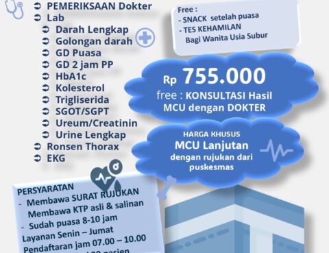 Pastikan kondisi tubuh tetap prima sebelum menunaikan ibadah haji.RS Harum Sisma Medika kini menyediakan paket pemeriksaan lengkap untuk calon jemaah haji reguler dengan harga Rp 755.000 sudah termasuk:🩺 Pemeriksaan dokter & laboratorium lengkap💬 Konsultasi hasil MCU dengan dokter🍎 Snack setelah puasa💗 Tes kehamilan bagi wanita usia subur 📅 Layanan: Senin–Jumat🕖 Pendaftaran: 07.00–10.00 WIB📍 Kuota maksimal…