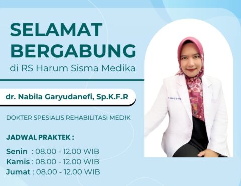 RS Harum Sisma Medika menyambut bergabungnya dr. Nabila Garyudanefi, Sp.K.F.R, Dokter Spesialis Rehabilitasi Medik yang mulai praktik pada Senin, 3 November 2025. Jadwal Praktek:Senin, Kamis & Jumat⏰ 08.00 – 12.00 WIBPelayanan Rehabilitasi Medik bertujuan membantu pasien dalam memulihkan, mempertahankan, dan meningkatkan kemampuan fisik agar dapat beraktivitas secara optimal. dr. Nabila siap memberikan layanan komprehensif bagi…
