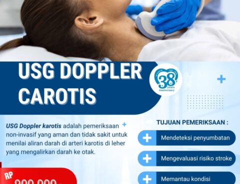 USG Doppler Carotis adalah pemeriksaan non-invasif yang aman dan tidak menimbulkan rasa sakit. Pemeriksaan ini dilakukan untuk menilai aliran darah pada arteri karotis di leher, yaitu pembuluh darah utama yang mengalirkan darah ke otak. Pemeriksaan ini sangat penting untuk:🔹 Mendeteksi adanya penyumbatan atau penyempitan pembuluh darah🔹 Mengevaluasi risiko terjadinya stroke🔹 Memantau kondisi sirkulasi darah ke…