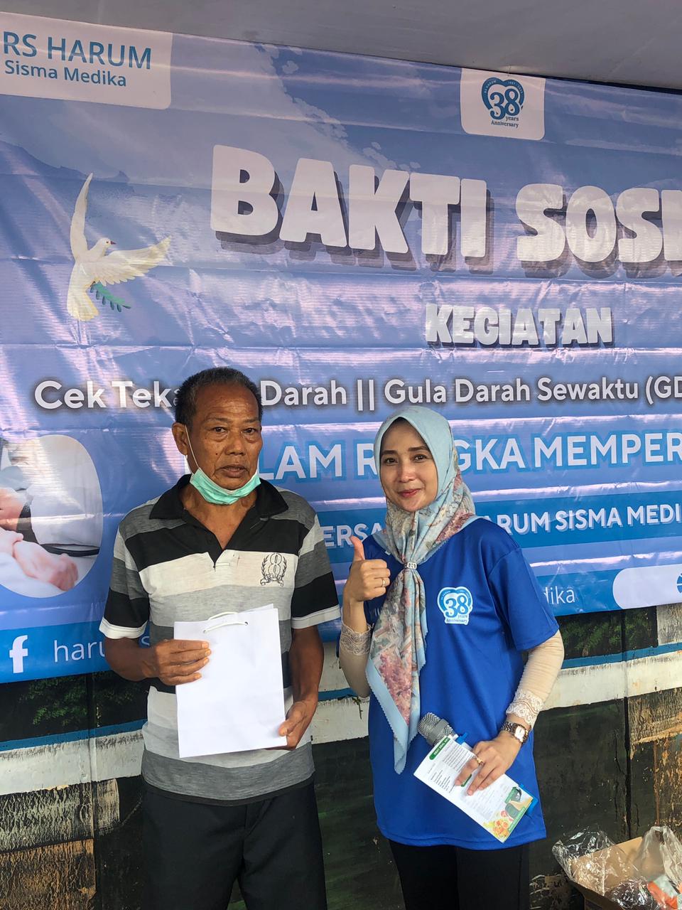 Dalam rangka memperingati Hari Ulang Tahun RS Harum Sisma Medika yang ke-38, kami menggelar kegiatan Bakti Sosial Pemeriksaan Kesehatan Gratis meliputi cek tekanan darah, GDS (gula darah sewaktu), dan asam urat bagi masyarakat.