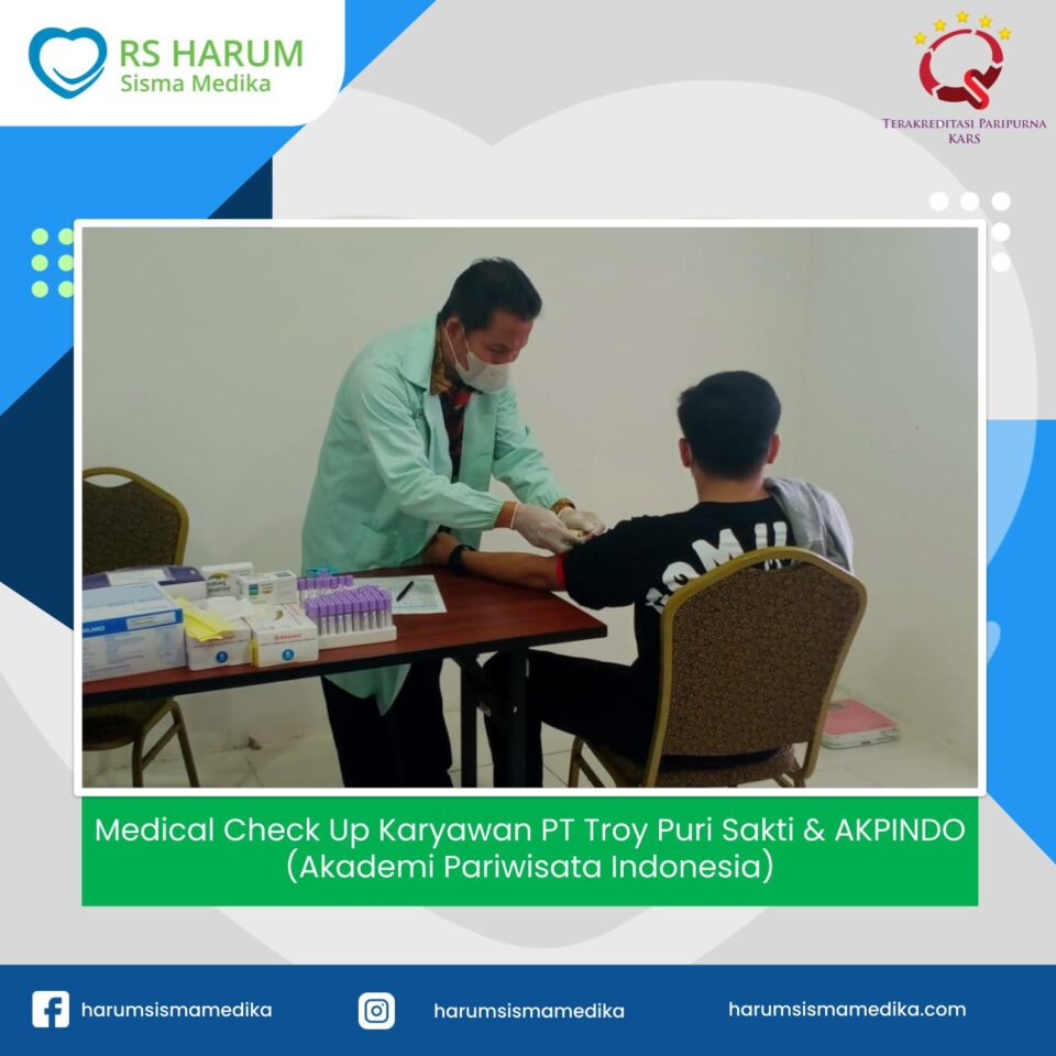 Sabtu, (21/5/22) Medical Check Up Karyawan PT Troy Puri Sakti hari ke-3 & Akpindo (Akademi Pariwisata Indonesia) di RS Harum Sisma Medika. MCU karyawan merupakan pemeriksaan kesehatan untuk mengevaluasi kesehatan karyawan maupun calon karyawan. MCU karyawan dilakukan guna mengetahui lebih dini apakah pegawai atau calon karyawan memiliki kelainan maupun potensi penyakit tertentu agar dikemudian hari tidak berkembang menjadi sesuatu yang lebih serius. Selain itu MCU karyawan juga bermanfaat untuk memastikan penempatan kerja karyawan di posisi jabatannya saat ini sesuai dengan kondisi kesehatan tubuhnya, untuk kinerja dan produktifitas maksimal.