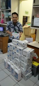 – GBI PRJ Group Team dr. Suryatini Sp. Pd berupa 5 jerigen hand sanitizer 5L dan 5 box handscoon