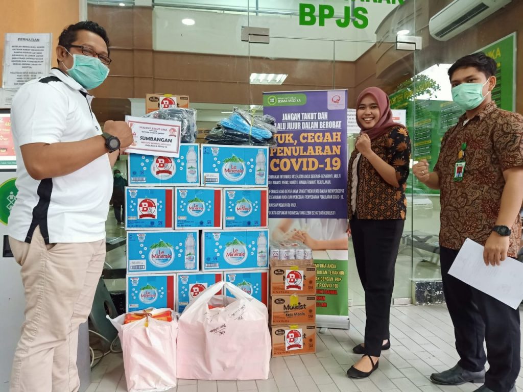 Sabtu (04/04/20) RS Harum Sisma Medika menerima bantuan dari Pejuang Bravo Lima bersama PT Mayora Tbk dan Abang Bakery berupa :