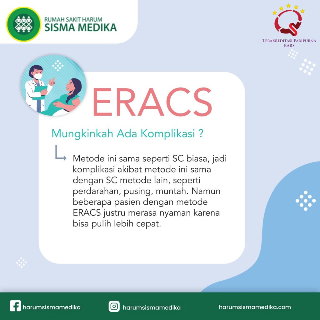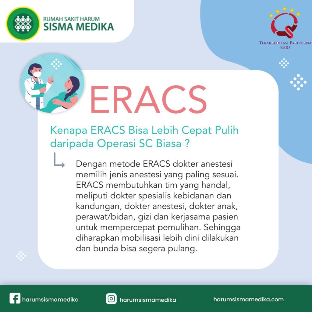 Teknik ERACS atau Enhanced Recovery After Cesarean Section merupakan teknik operasi yang bisa dilakukan pada persalinan sesar dengan minim rasa sakit dan pemulihan lebih cepat.