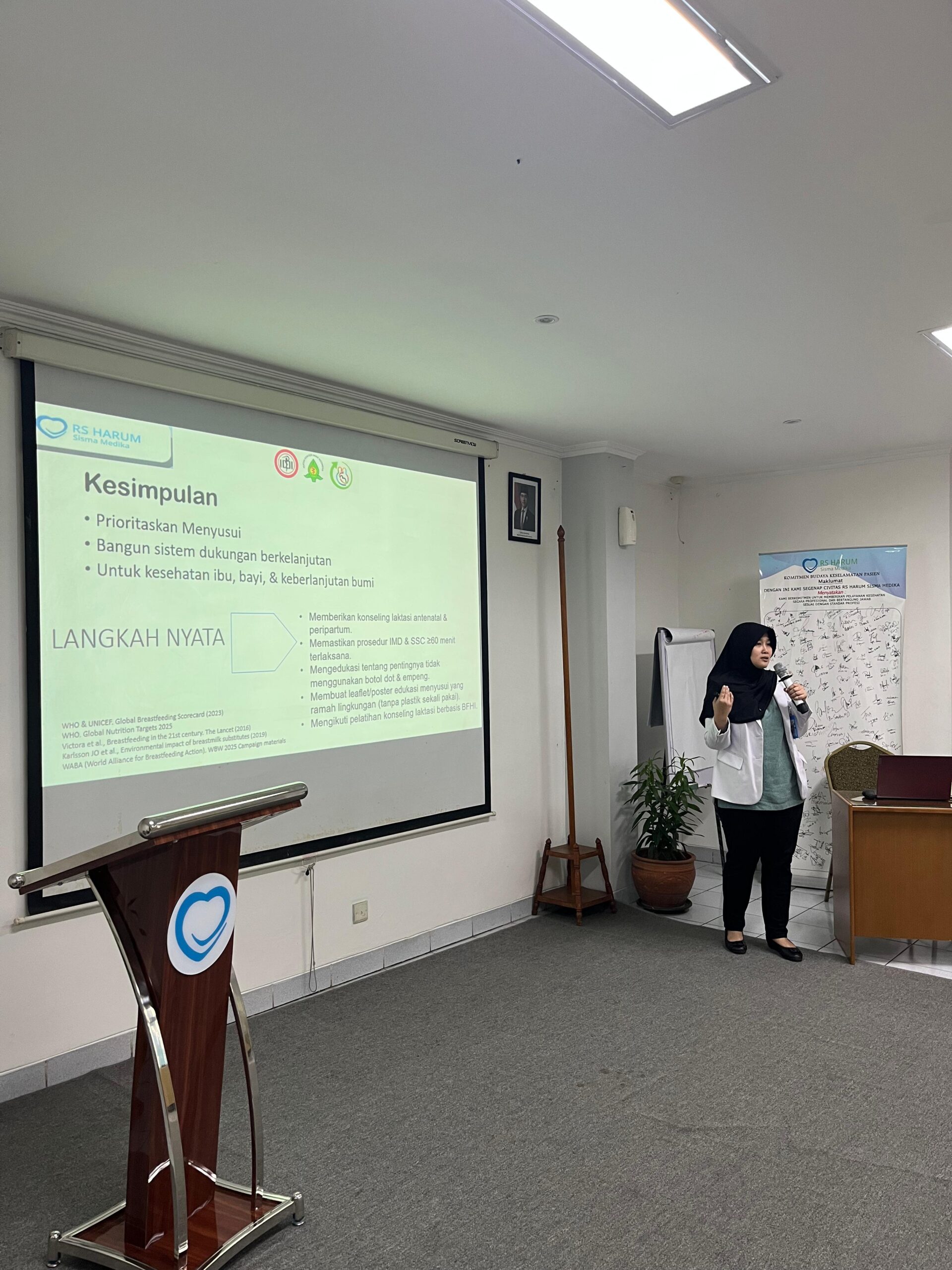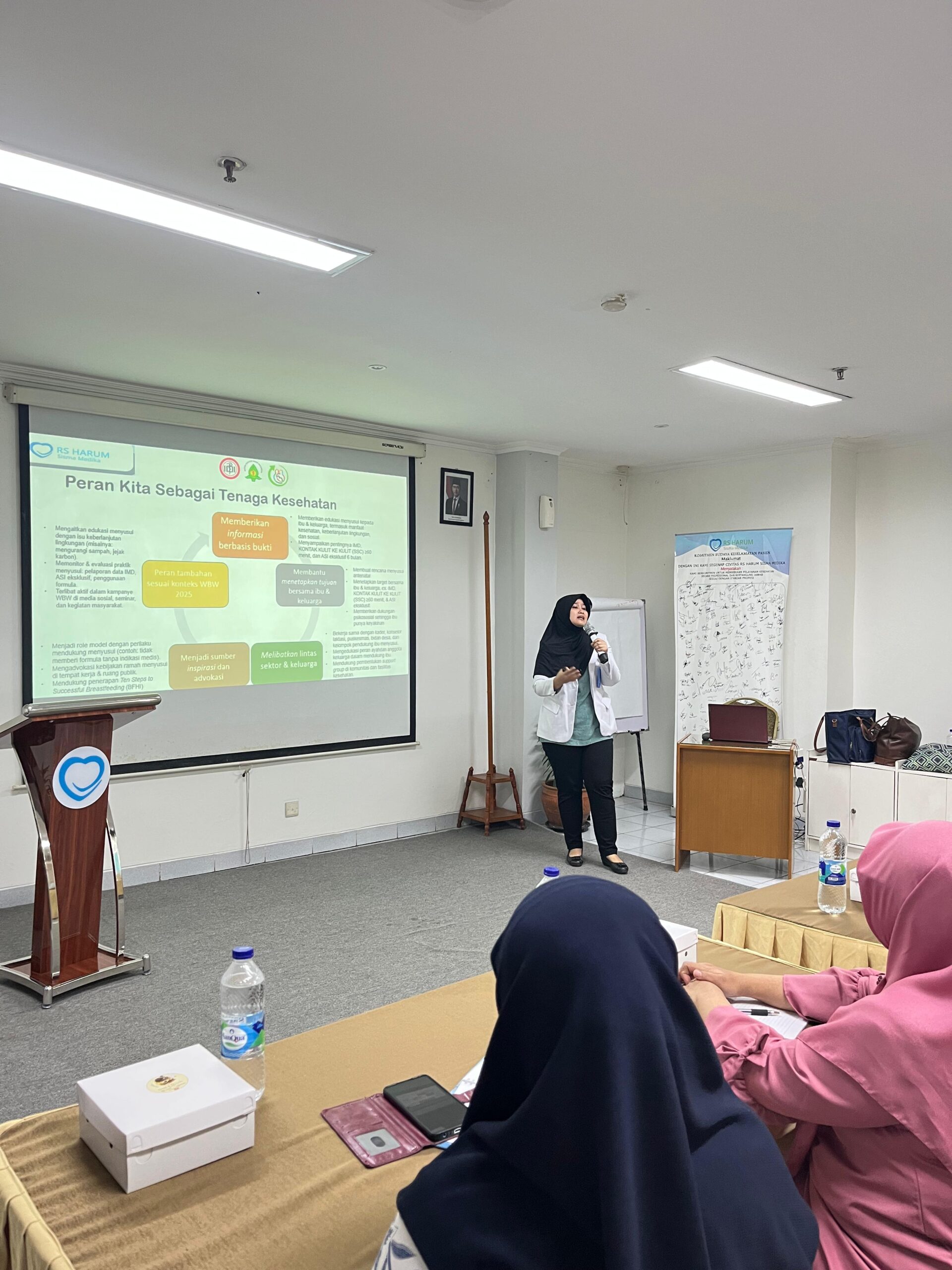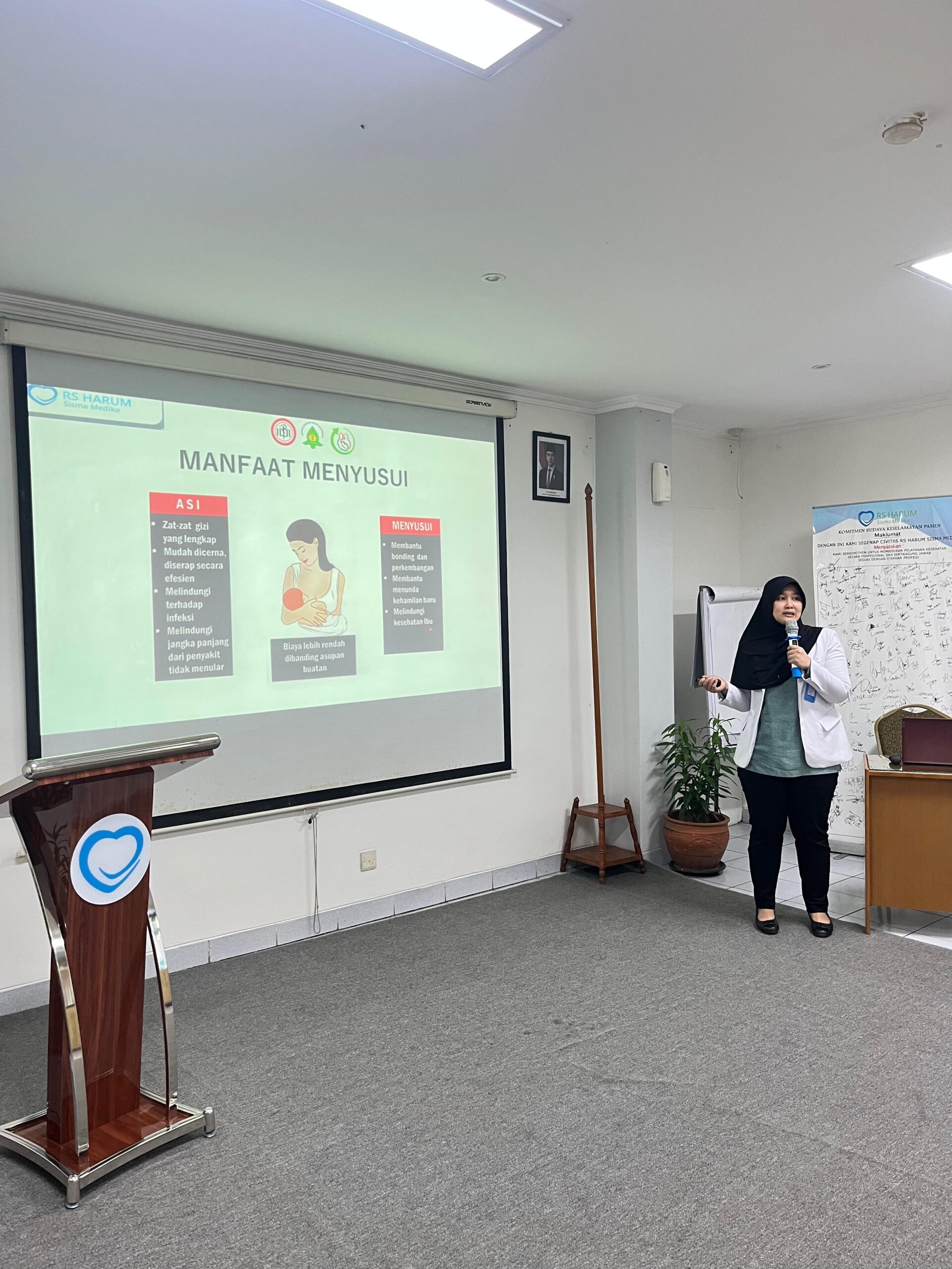 Dalam rangka memperingati Pekan ASI Sedunia 2025, RS Harum Sisma Medika mengadakan kegiatan sosialisasi pentingnya Air Susu Ibu (ASI) bersama para kader dan PPK 1 wilayah. Kegiatan ini dipandu oleh dr. Hambrah Sri Atriadewi, Sp.A, yang menyampaikan edukasi seputar manfaat ASI eksklusif bagi tumbuh kembang bayi, serta peran aktif keluarga dan tenaga kesehatan dalam mendukung ibu menyusui.
