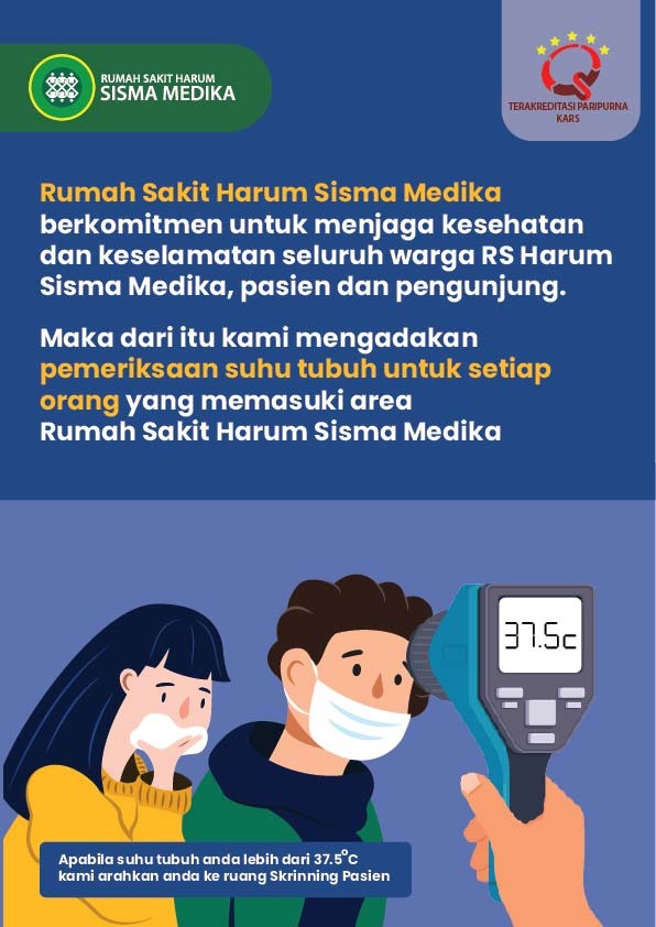 Jika anda mengalami gejala – gejala tersebut silahkan ke RS Rujukan. RS Harum Sisma Medika berkomitmen dalam menjaga kesehatan dan keselamatan warga RS Harum Sisma Medika dengan melakukan cek suhu setiap orang yang memasuki rumah sakit.