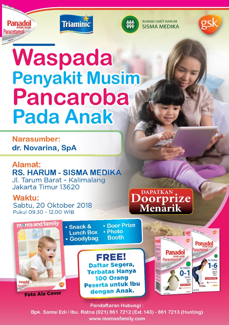 Terkait kondisi ini, RS Harum Sisma Medika mengadakan Seminar Ibu dan Anak bertema “Waspada Penyakit Musim Pancaroba pada Anak”, pada hari Sabtu 20 Oktober 2018, pkl. 09.30-12.00 WIB di RS Harum.